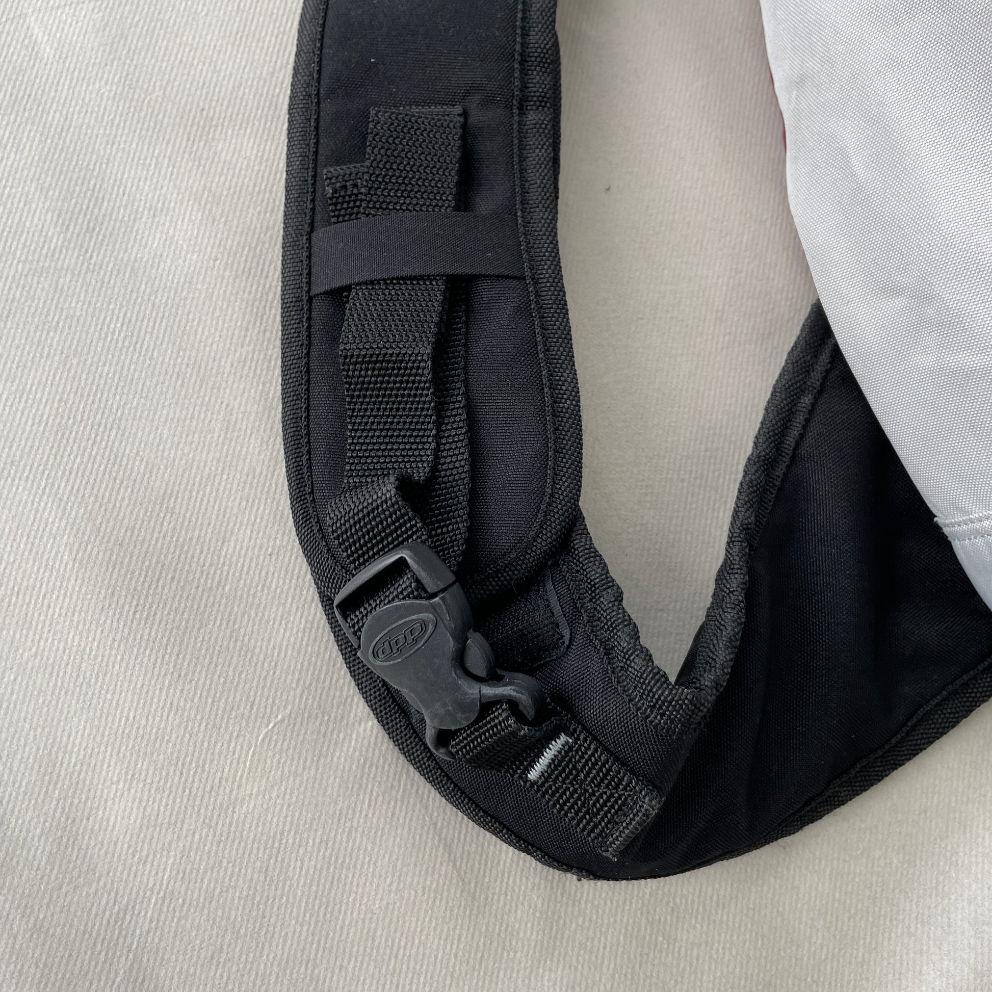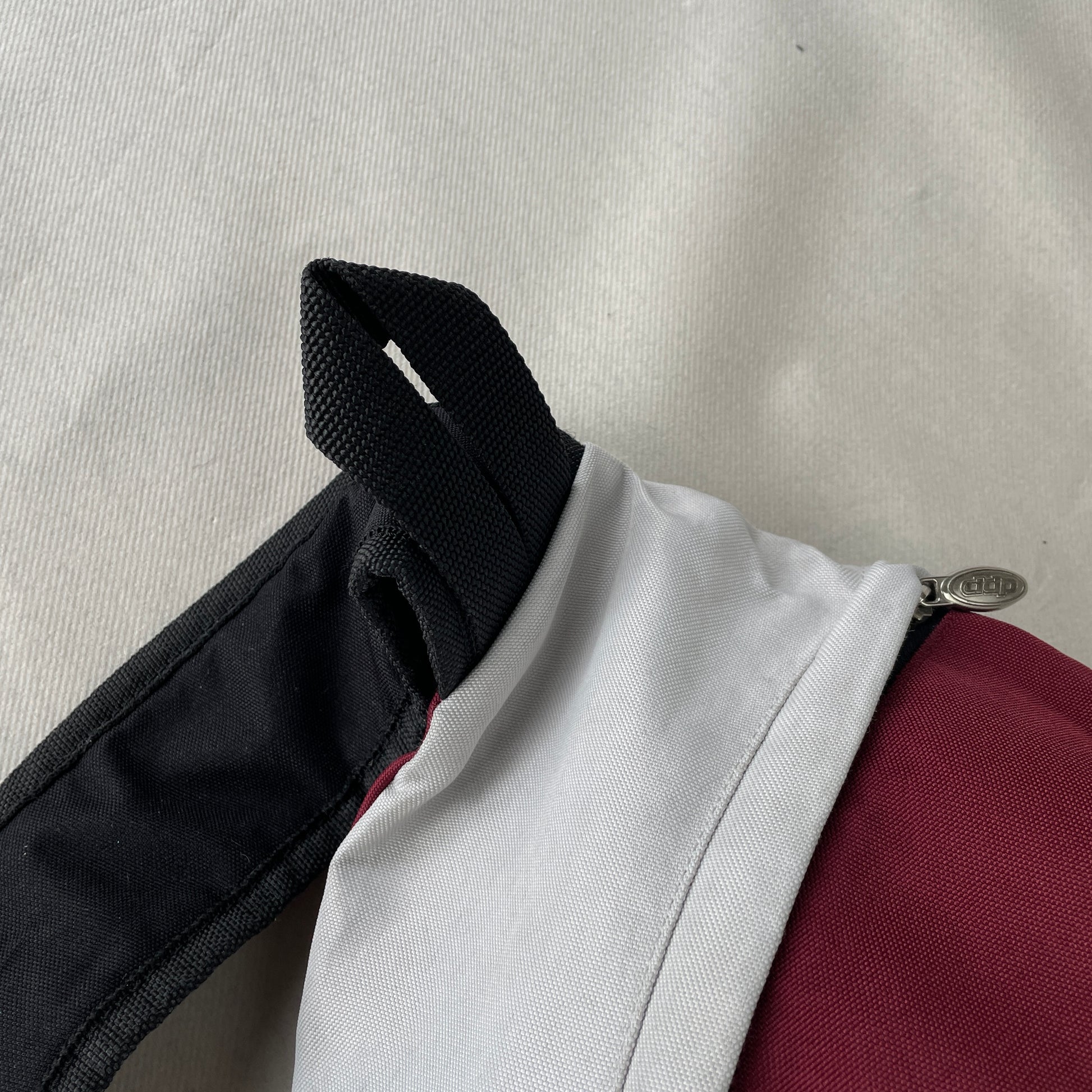 Vintage DDP Burgundy/White cross-body sling bag. Large compartiment with a small pocket & red embroidery. Velcro adjustable strap.