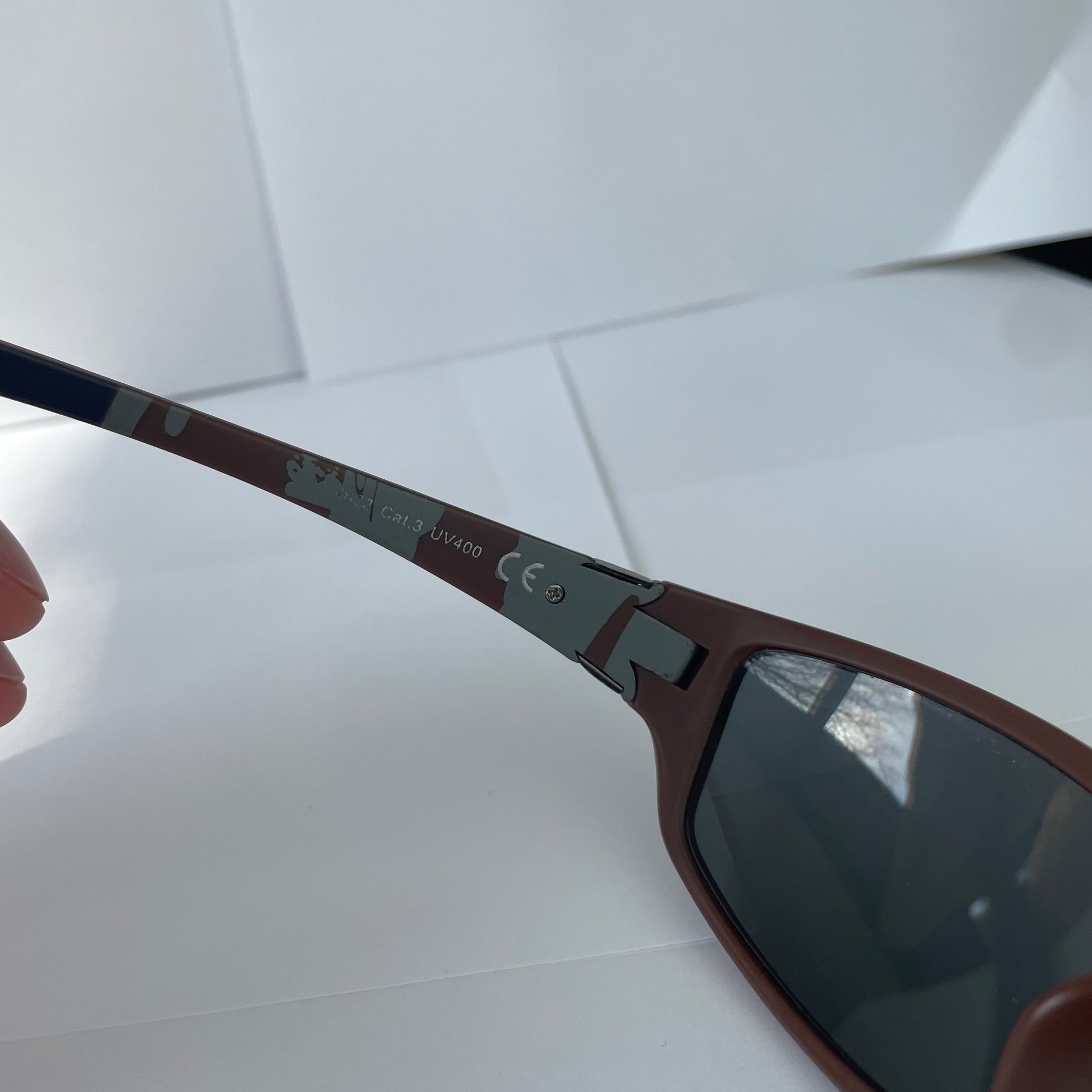 Vintage Max Air sunglasses. Black/Brown frame with gold/bronze lenses. Metal logo on the sides.