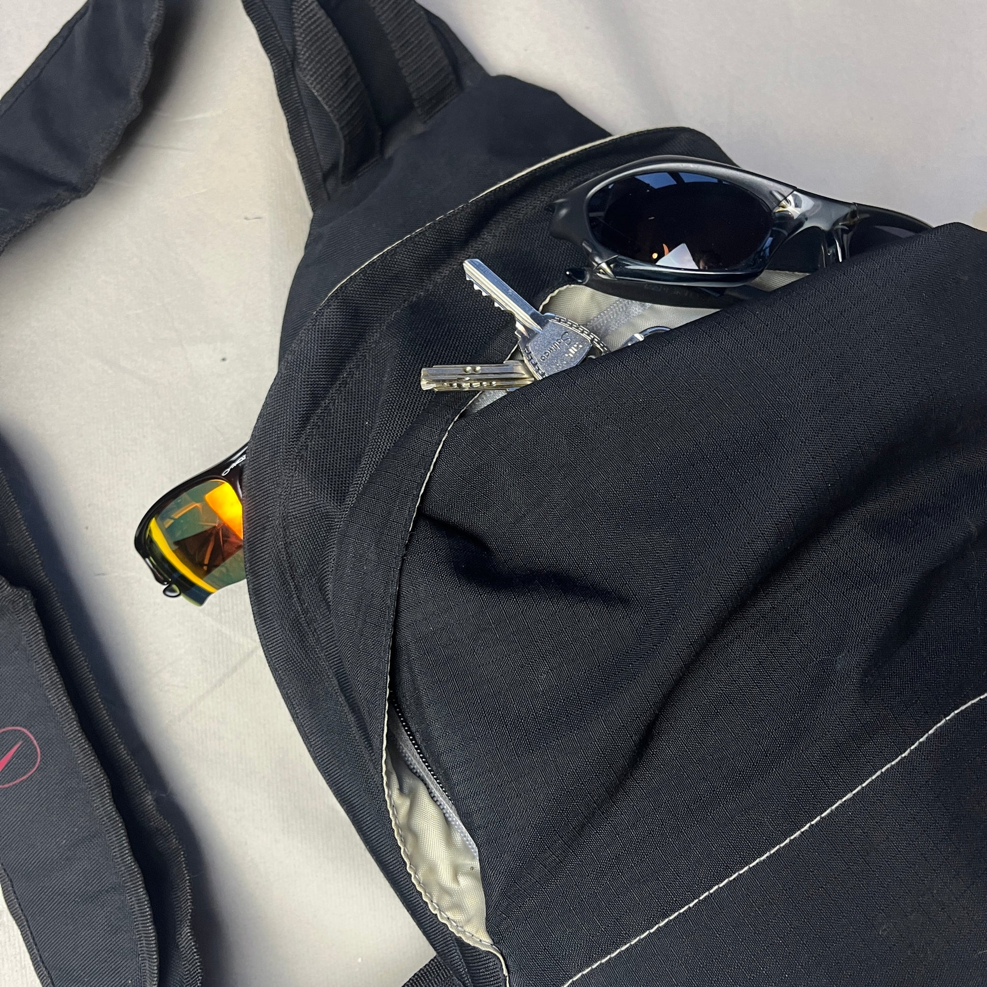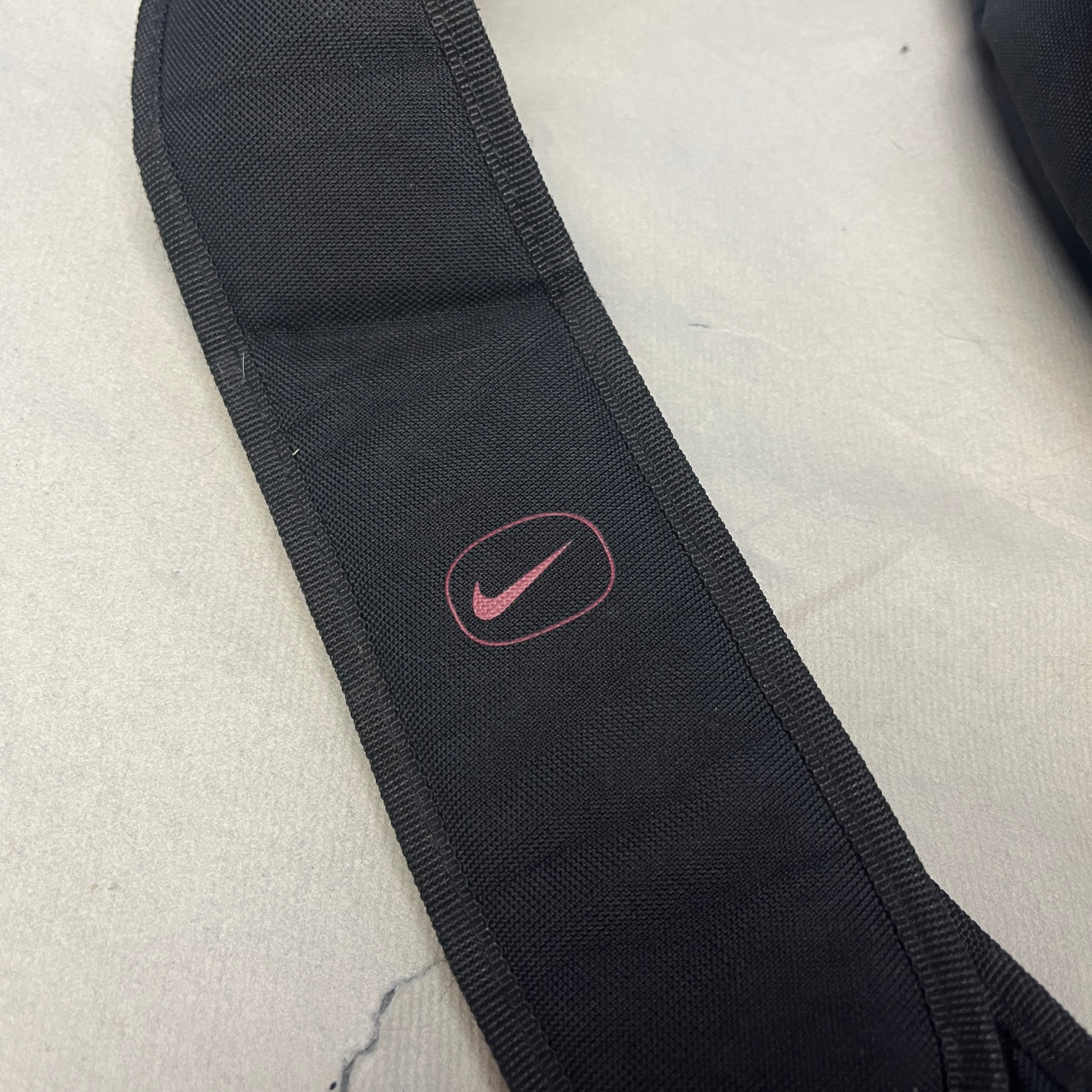 Vintage Nike Black cross-body sling bag. Large compartiment + a smaller compartiment, velcro-adjustable strap & red logos.