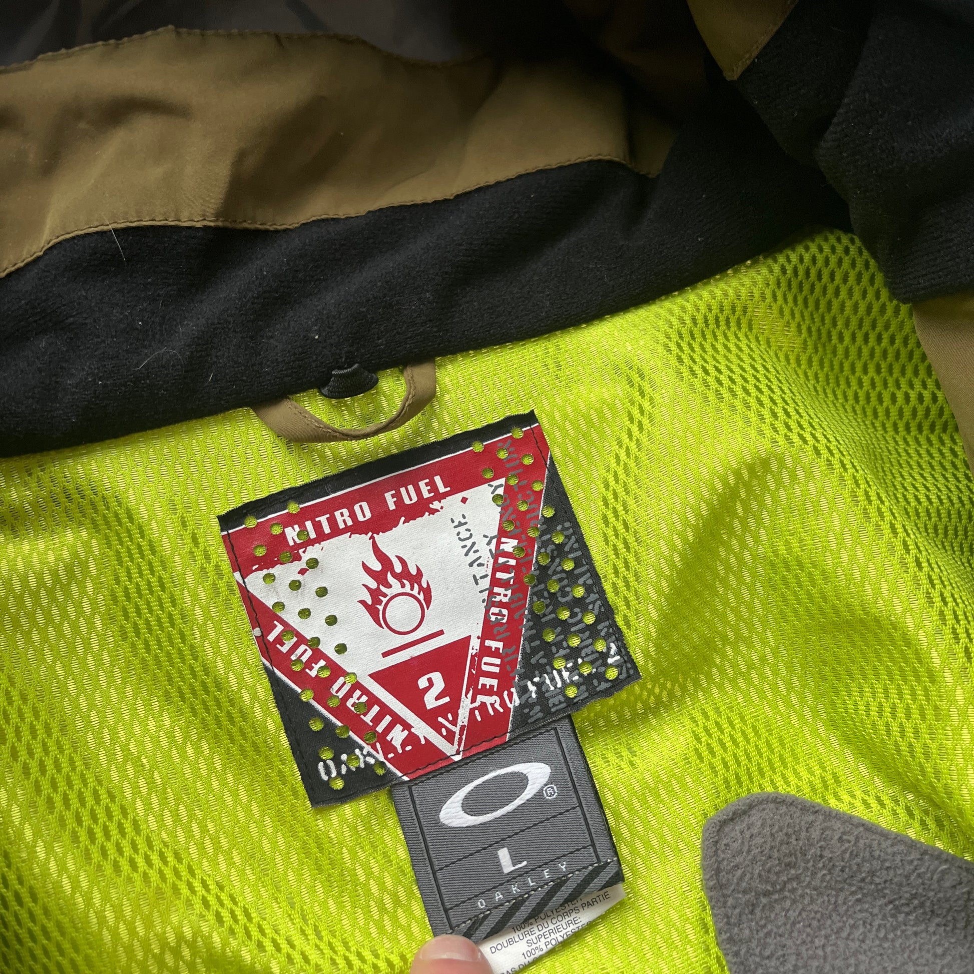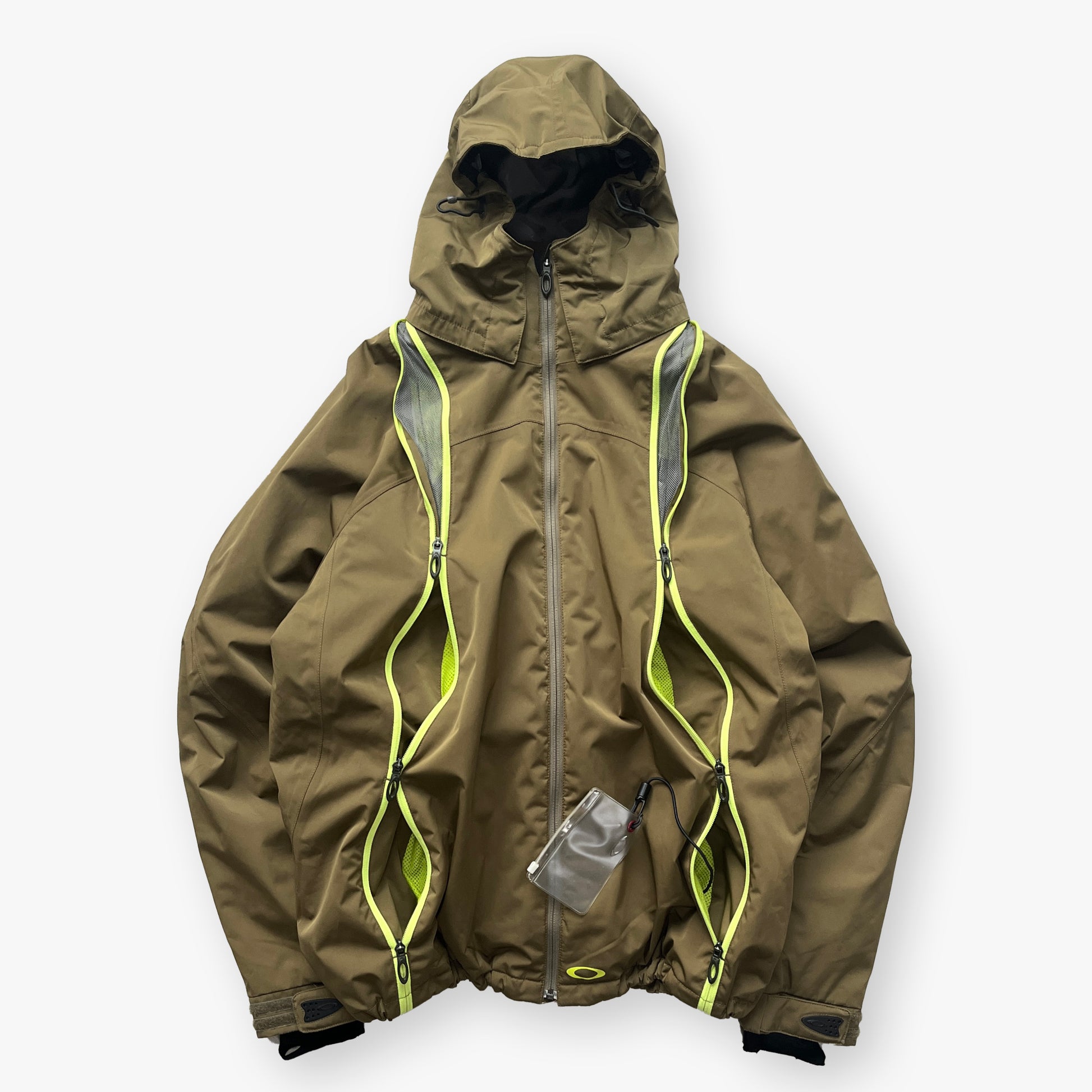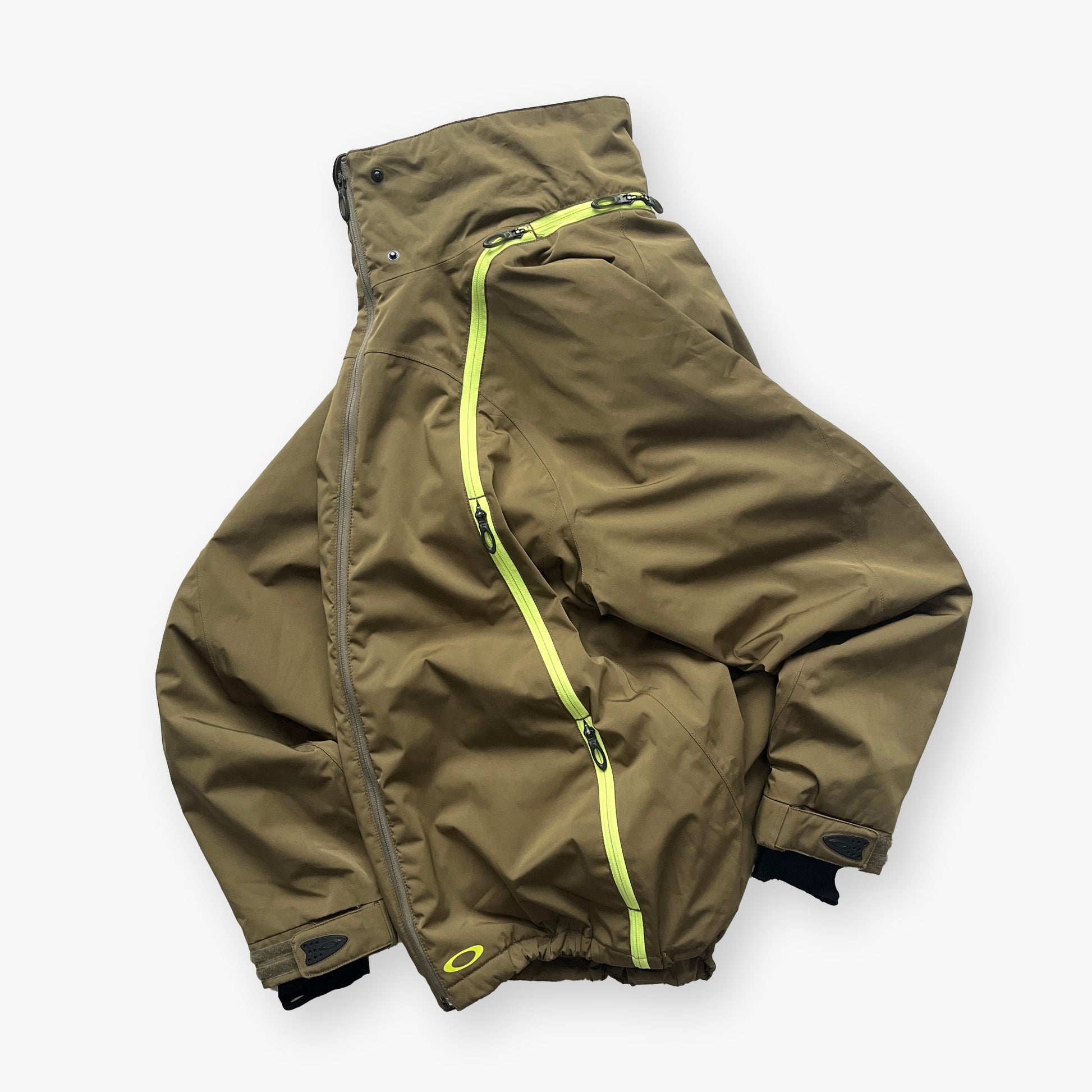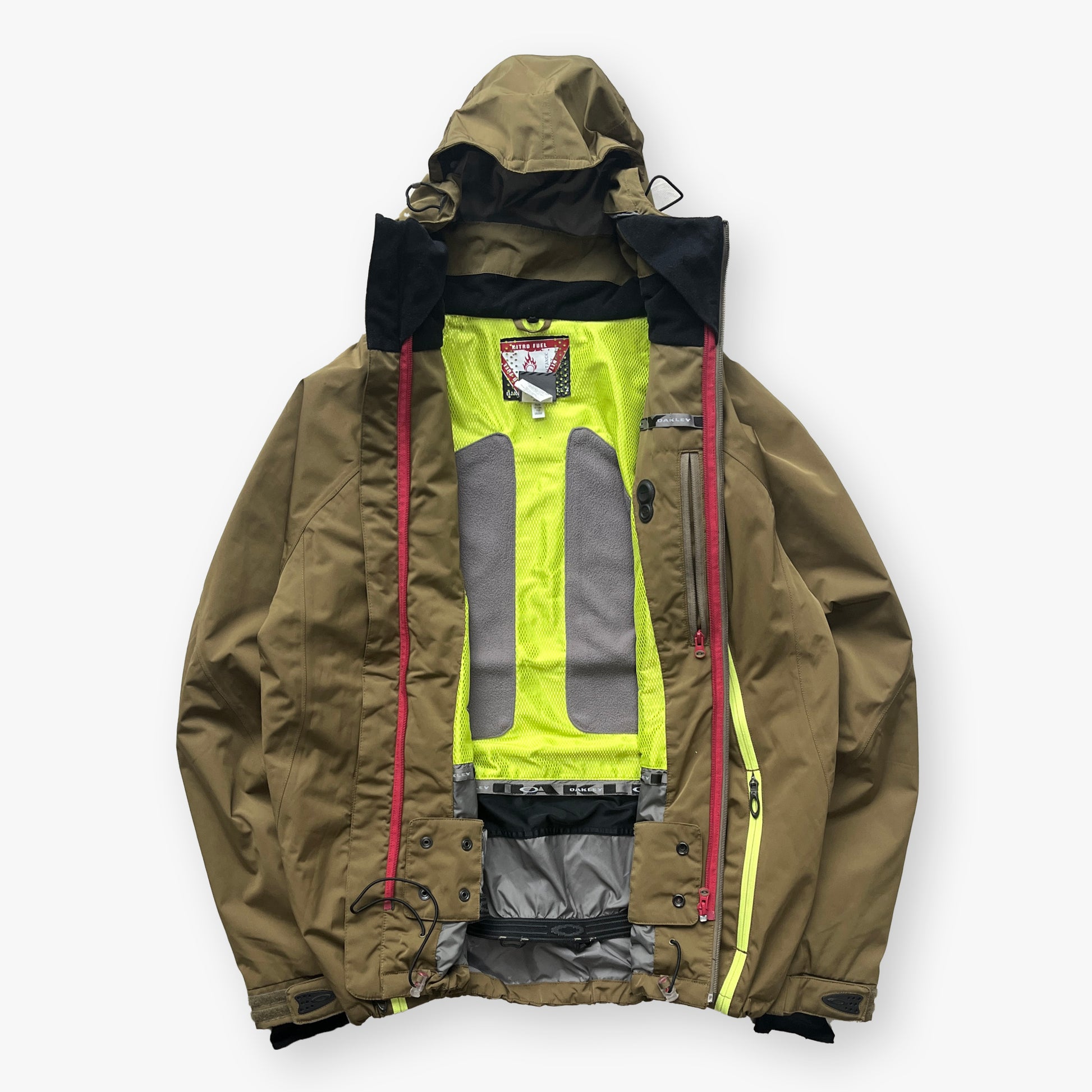 Khaki/Green 2005 2in1 Oakley Nitro Fuel Technical Pocket Jacket. One of the cooler & rare jackets I have come across so far! The very unique design in zip-pockets combined with the technical details makes this a true gem.