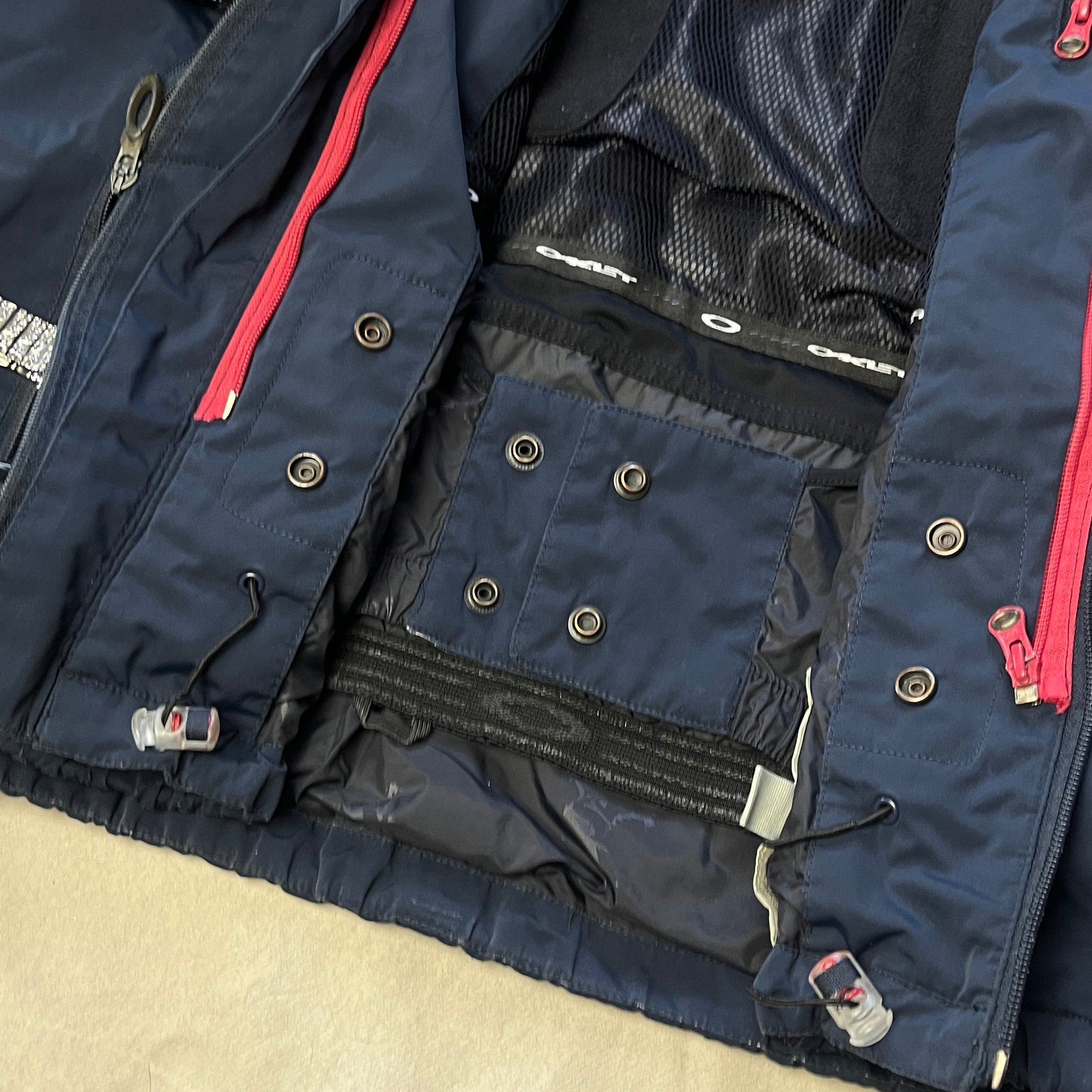 Navy Blue 2006 Oakley Nitro Fuel Technical Pocket Jacket. One of the cooler & rare jackets I have come across so far! The very unique design in zip-pockets combined with the technical details makes this a true gem.