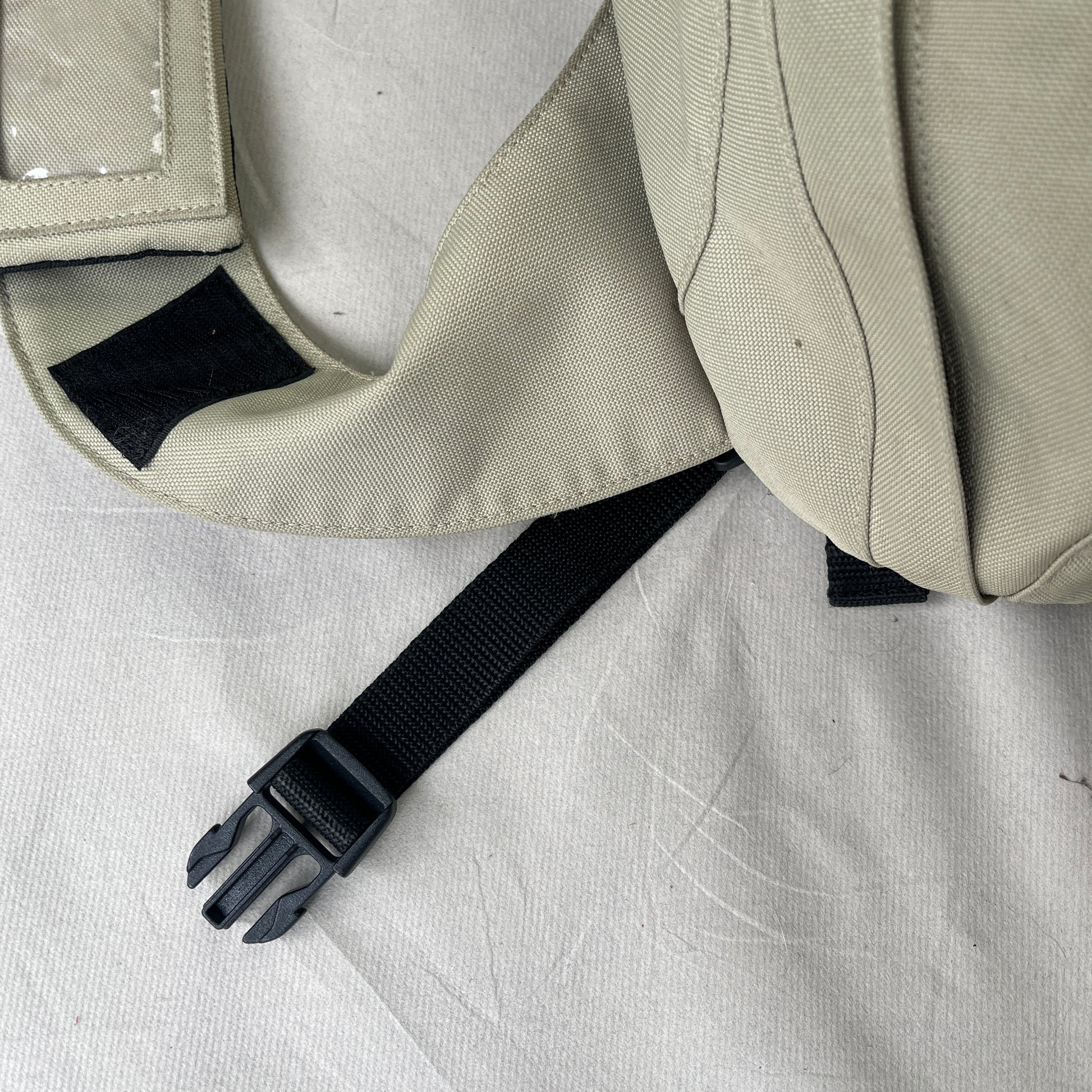 Set of Beige (has a light green tone to it) Quiksilver Sling Bag + Shoulder bag. Features a large compartiment, a front zip-pocket, a velcro shoulder strap with velcro-detachable pocket & skipass-holder. Tri-harness wraps comfortably around body & sits steady. Has multiple buckles to tighten areas per your needs. All body-straps are adjustable.