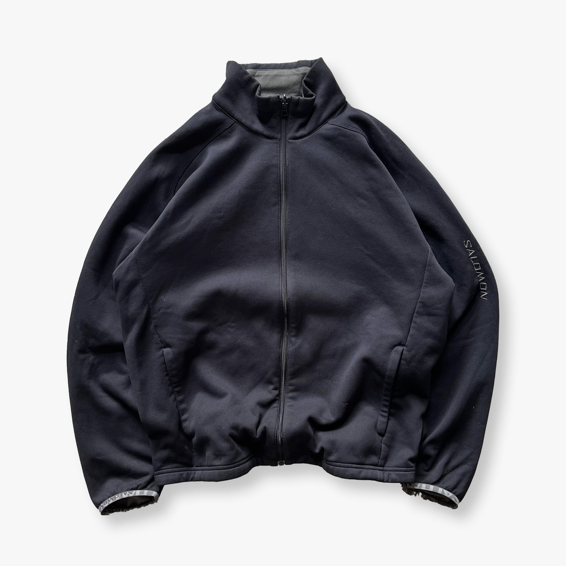 Black Salomon 2000s Fleece-lined Jacket, originally servers as a middle layer to attach to your Ski Jacket.