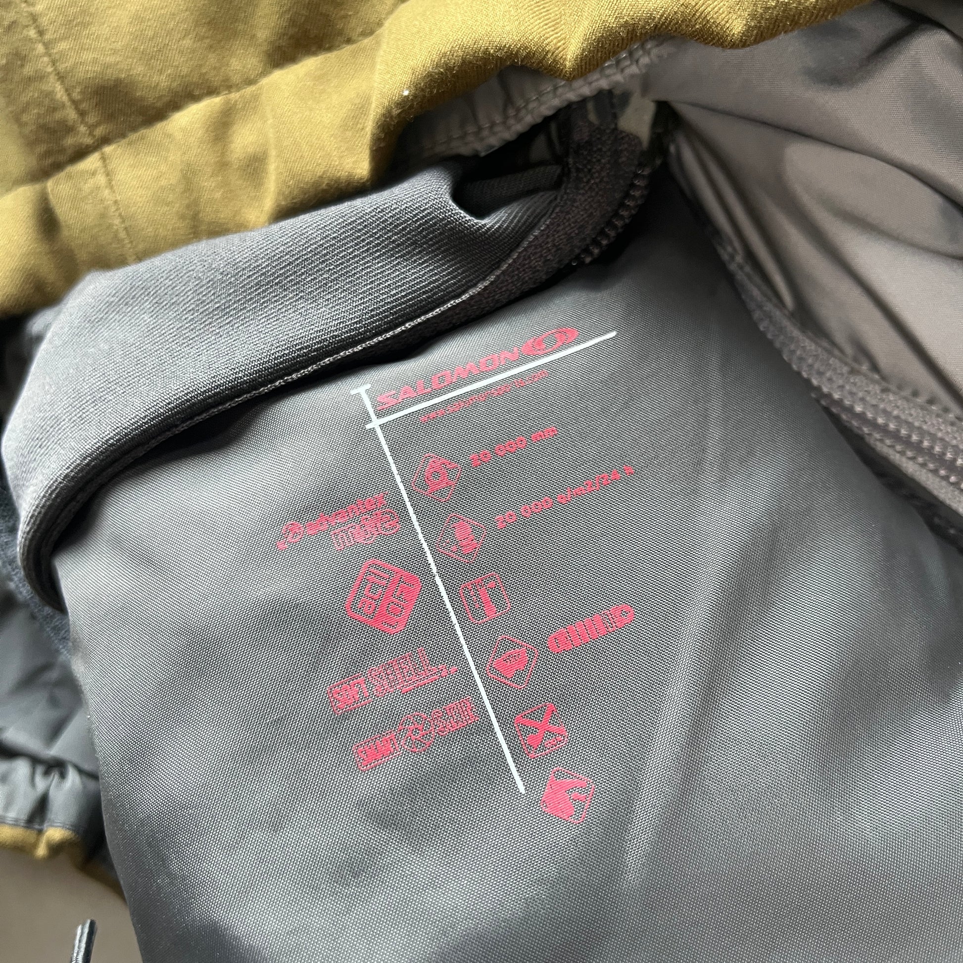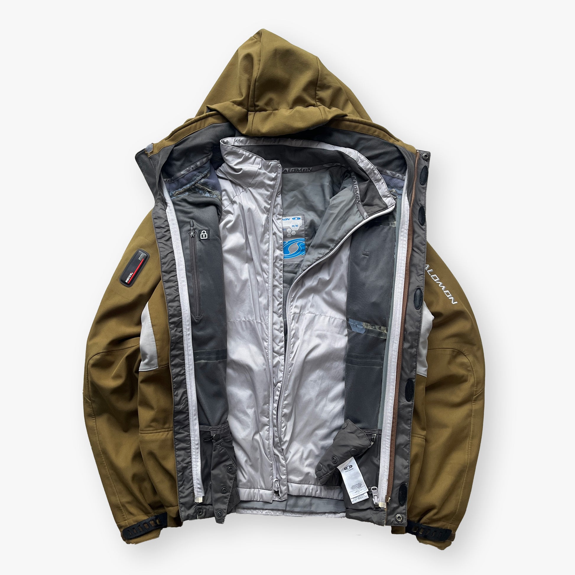 Khaki/Grey 2in1 Salomon 2007 Ski Jacket. Snow -& weatherproof softshell outer, fleece-lined & seam-taped. ActiLoft inner layer for extra warmth.