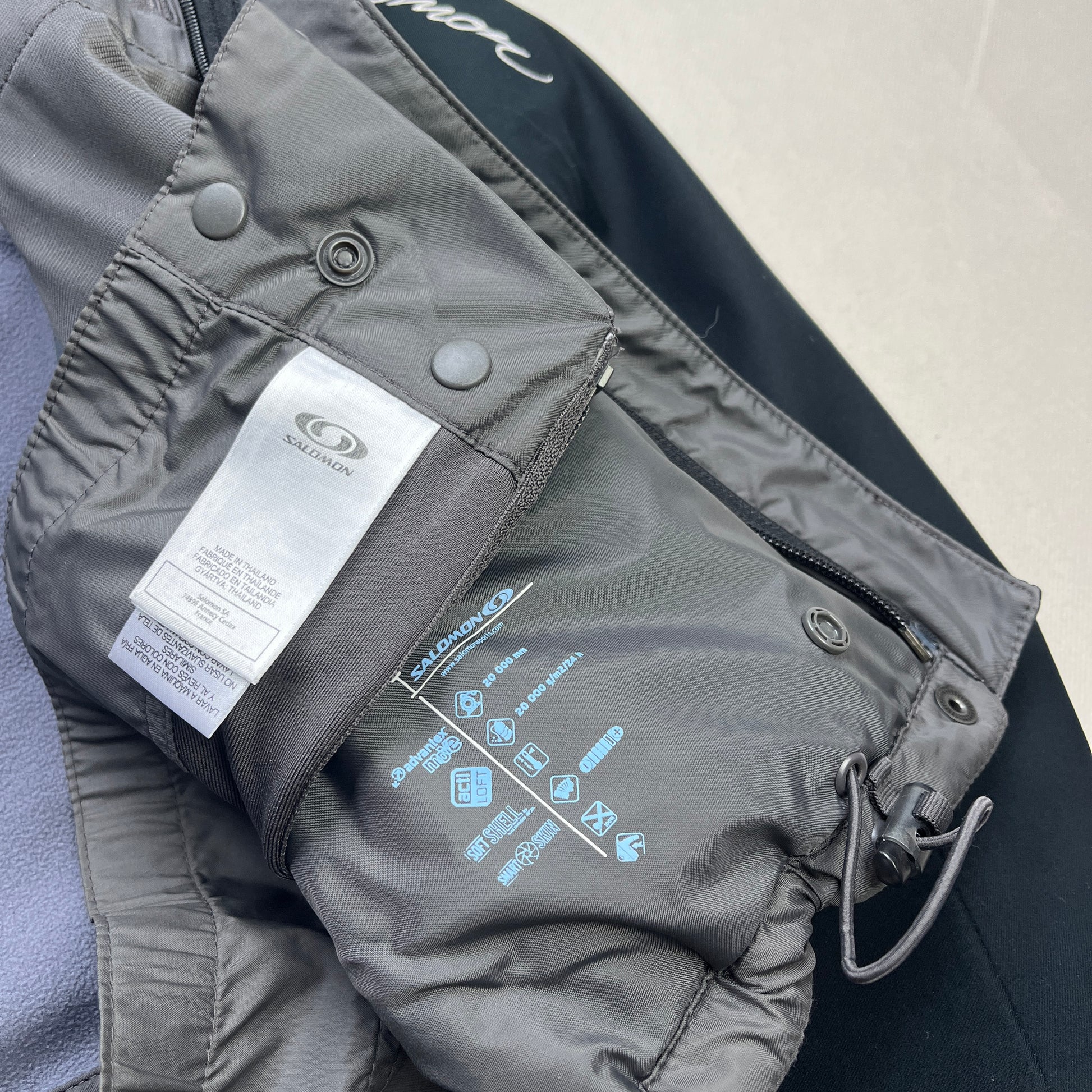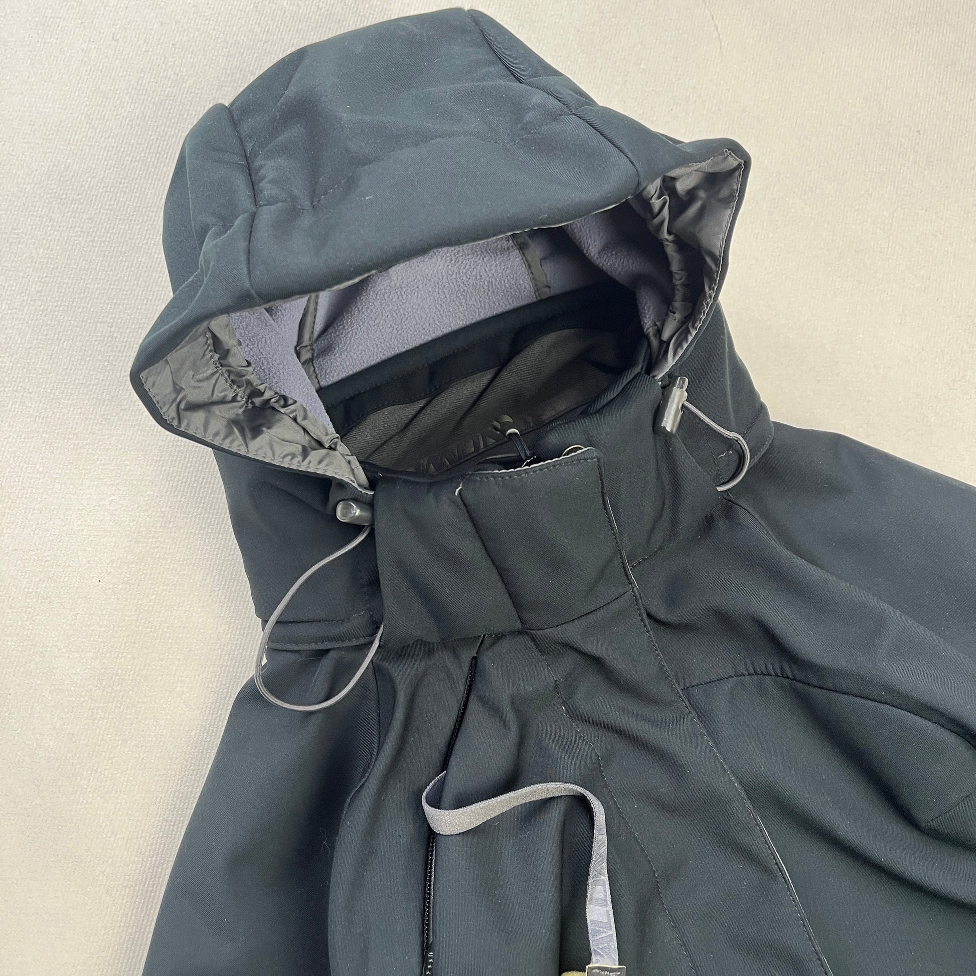 Black Salomon's 2007 Ski Jacket. Water-repellent softshell outer, fleece-lined & seam-taped.