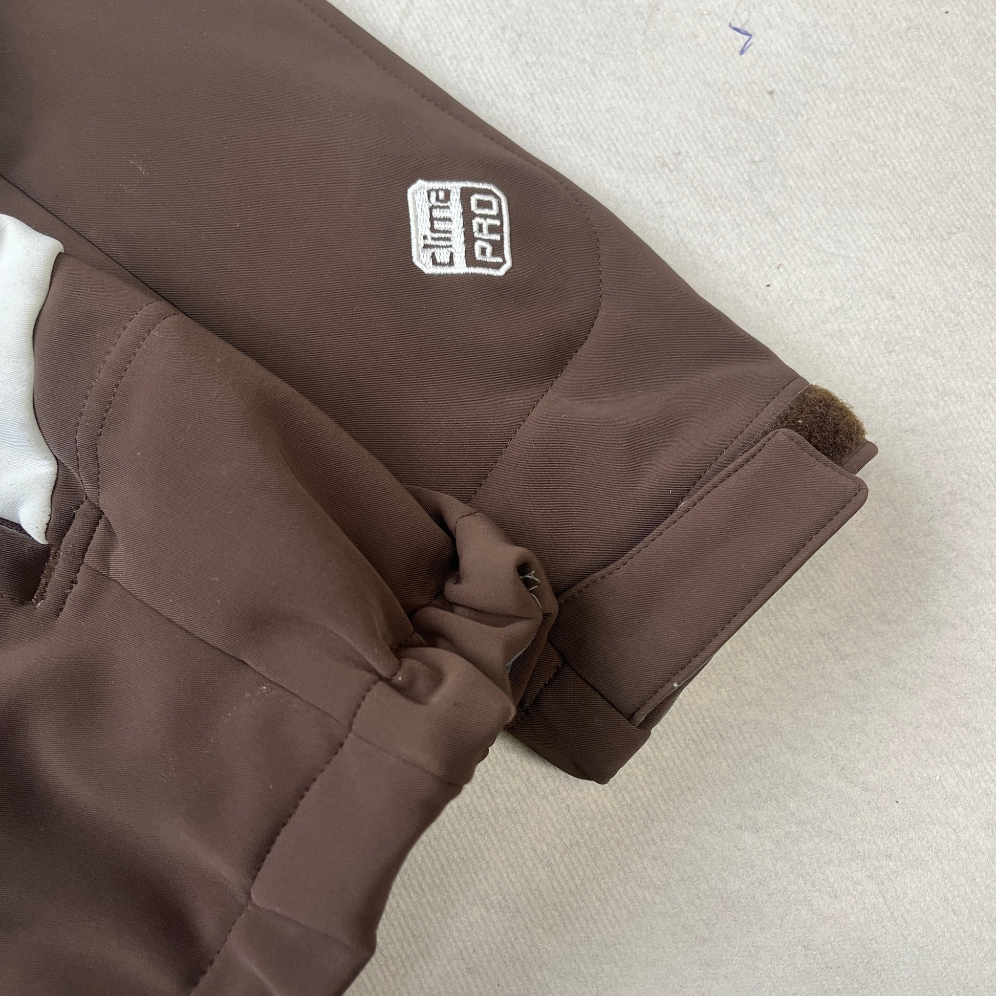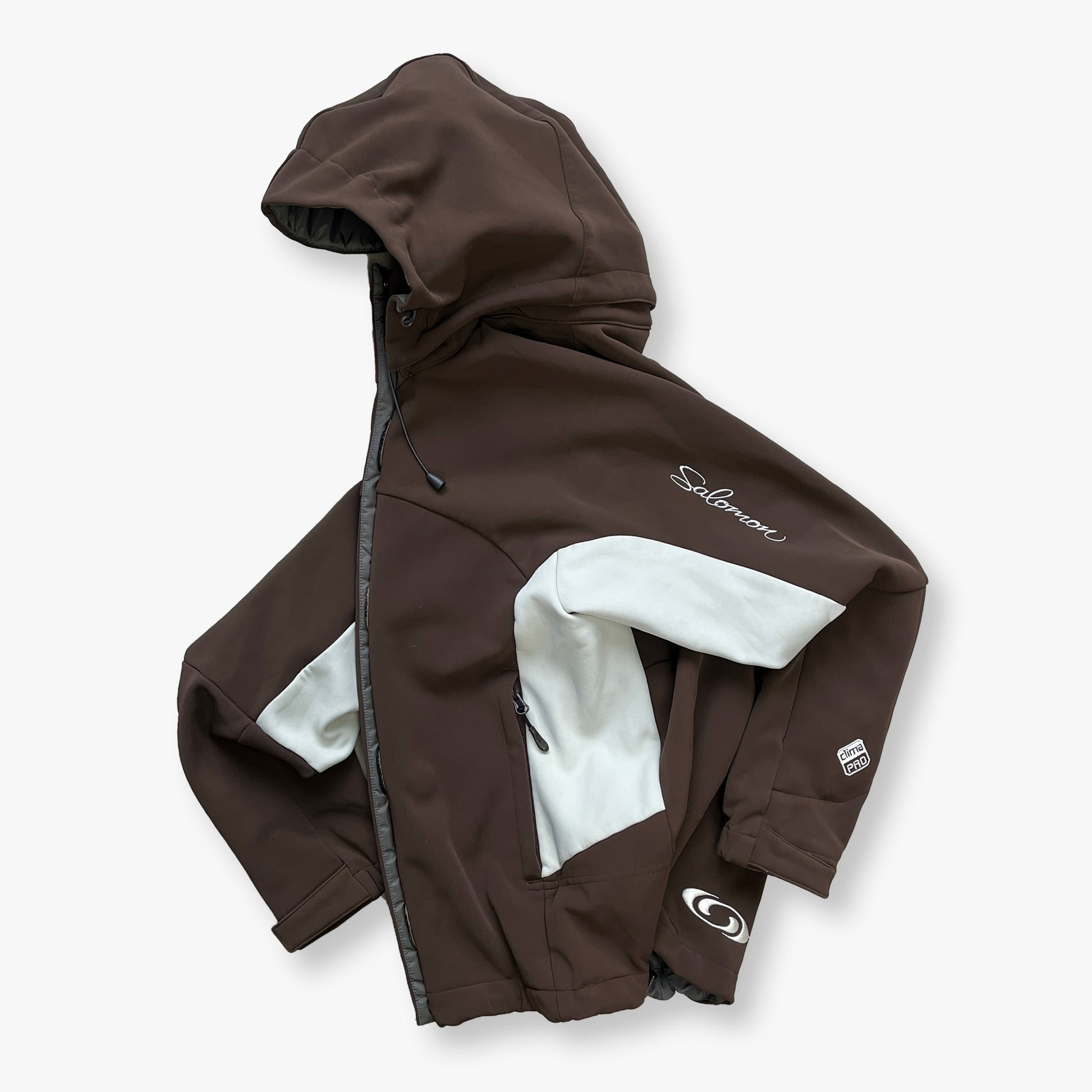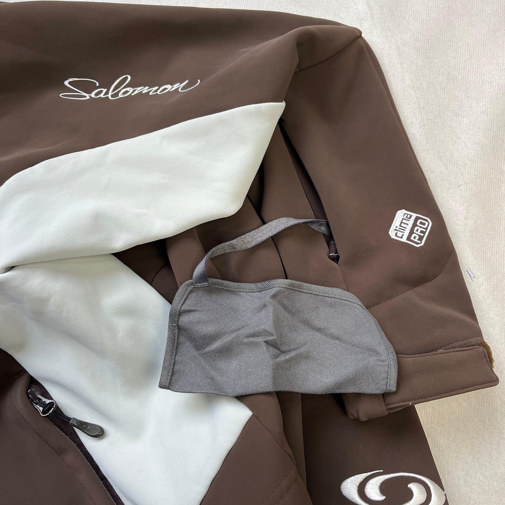 Beautifully paneled Brown/White Salomon's 2007 Ski Jacket. Water-repellent, fleece-lined ClimaPro outer.