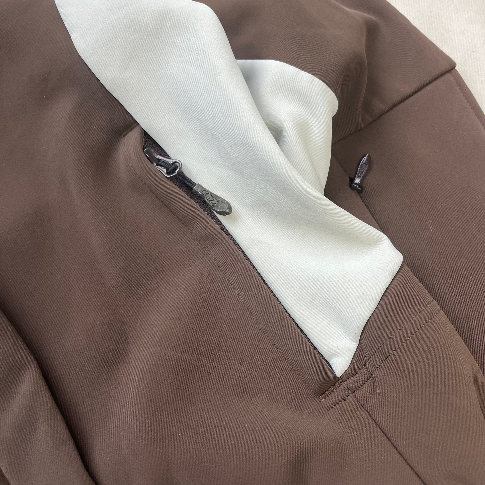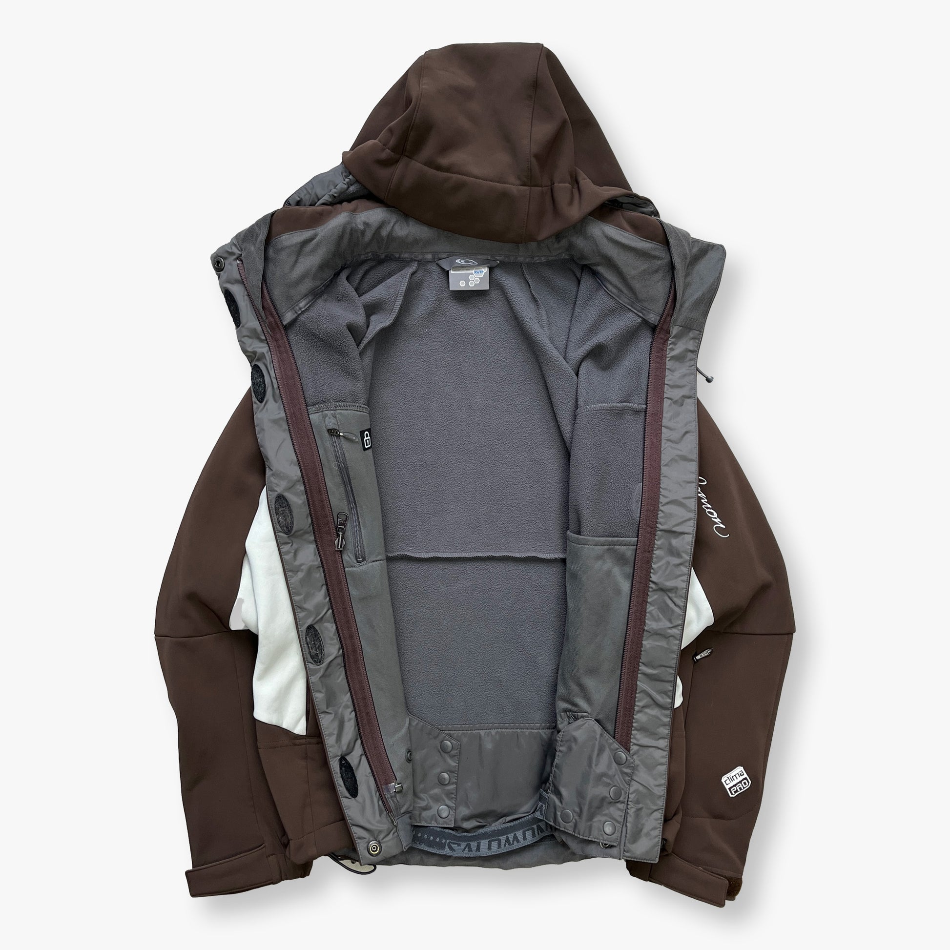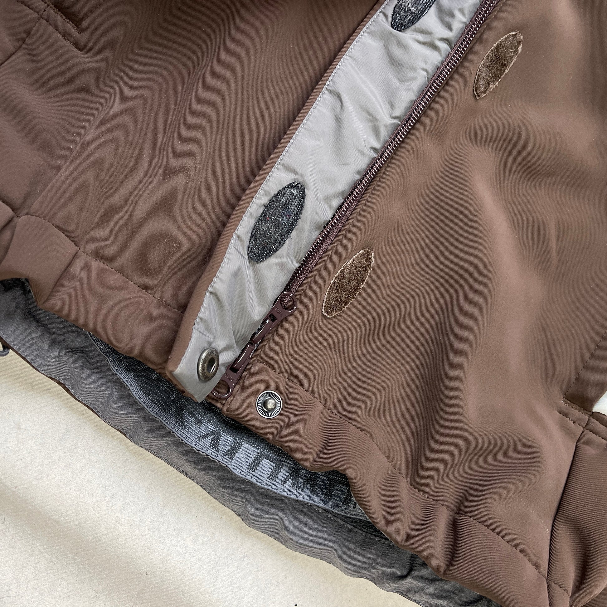 Beautifully paneled Brown/White Salomon's 2007 Ski Jacket. Water-repellent, fleece-lined ClimaPro outer.