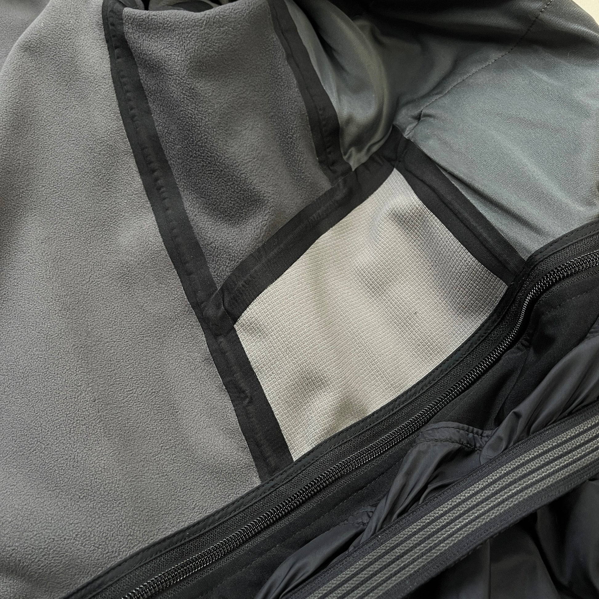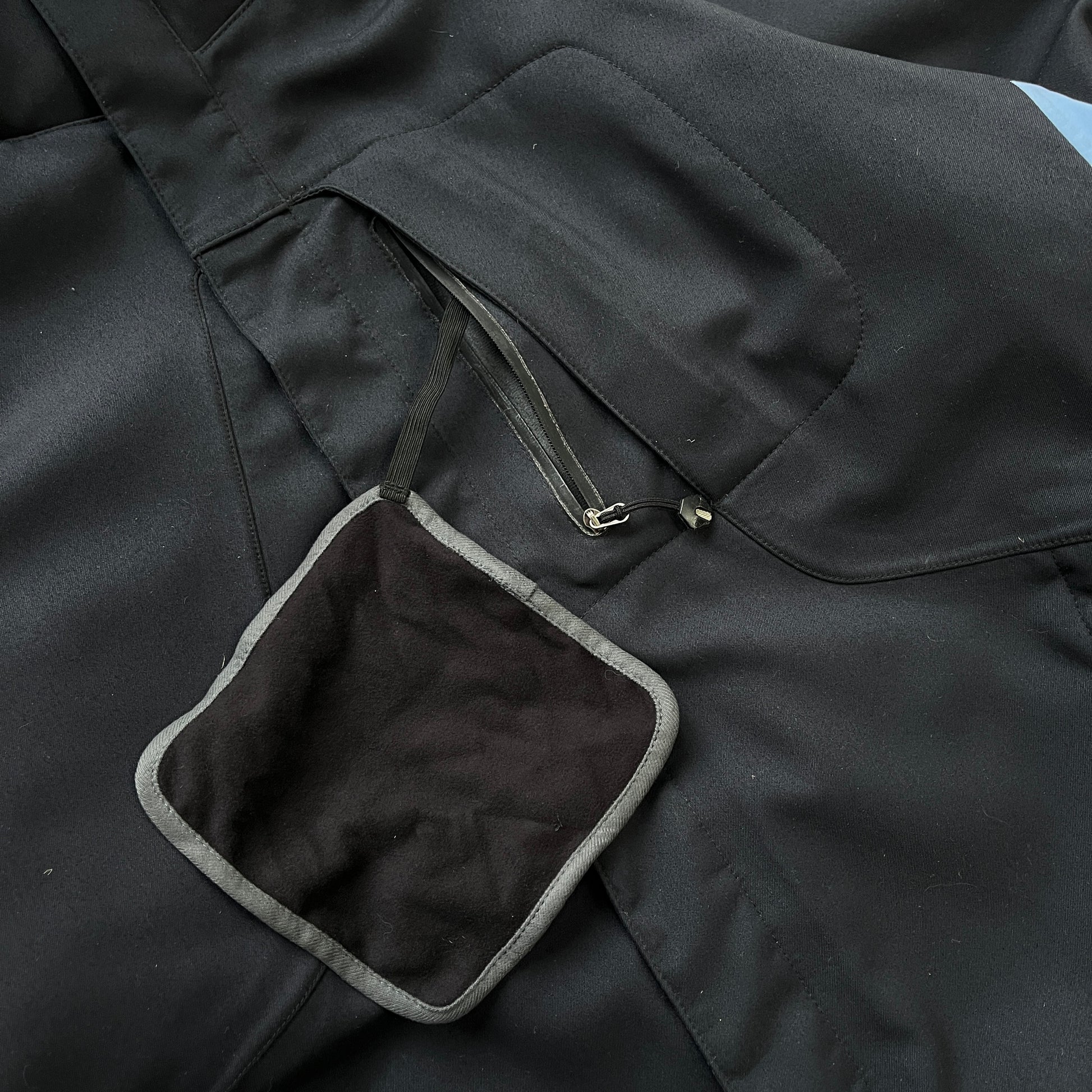 The secondary inner layer is an actiLOFT insulated nylon jacket, has open pockets, 1 inside zip-pocket, goggle pocket & buttons to attach it to the outer jacket.