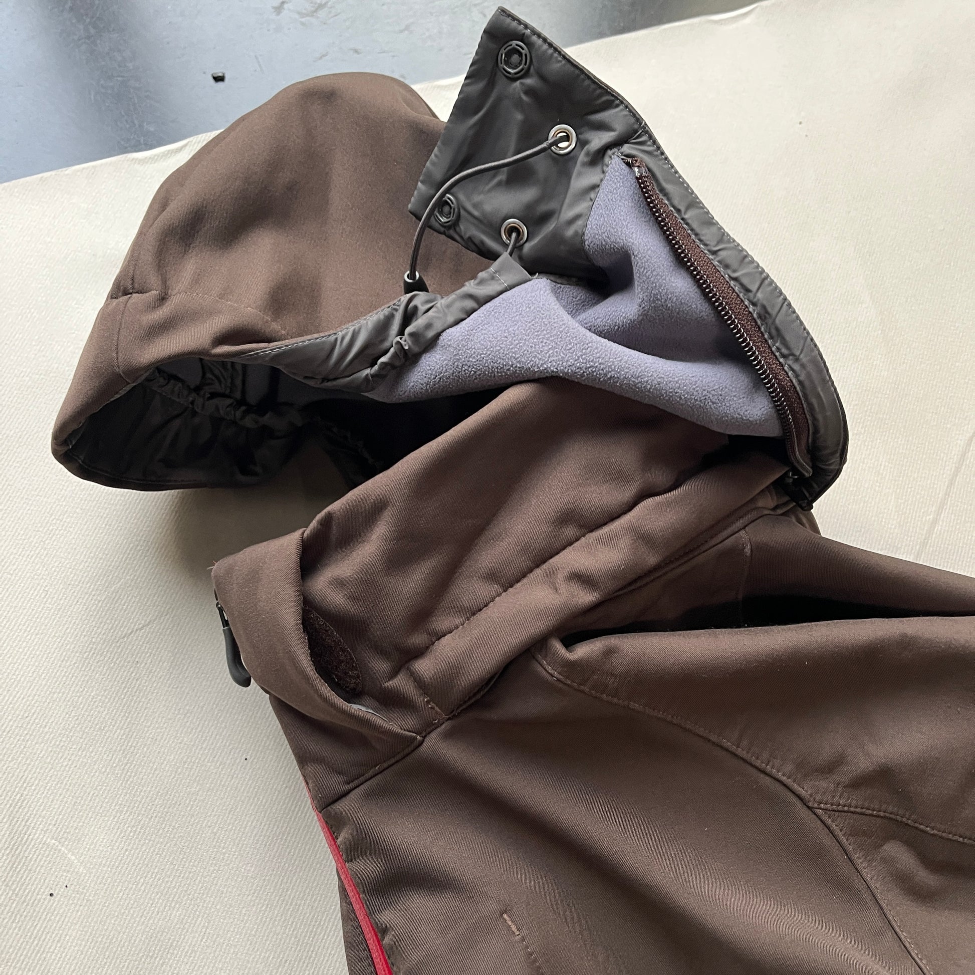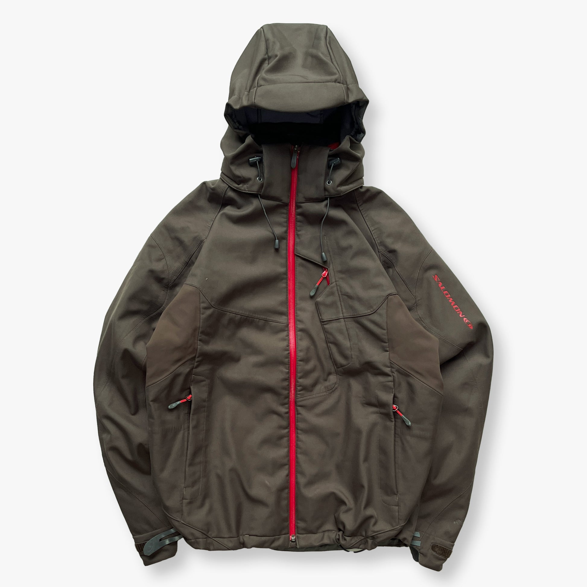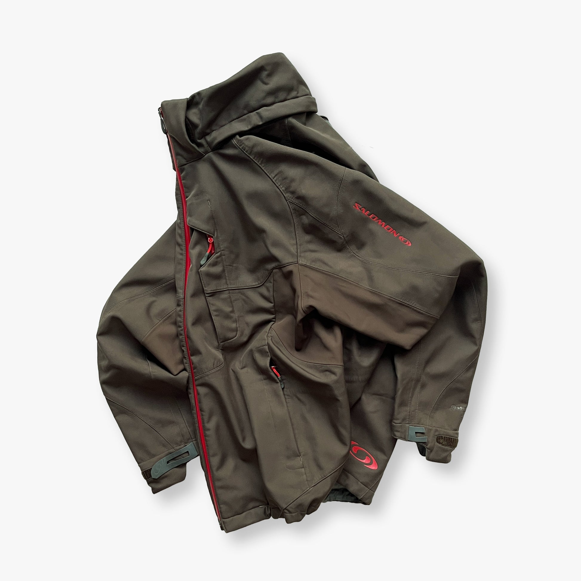 Brown/Red 2in1 Salomon 2008 Ski Jacket. Snow -& weatherproof softshell outer, fleece-lined & seam-taped. Primaloft inner layer for extra warmth.
