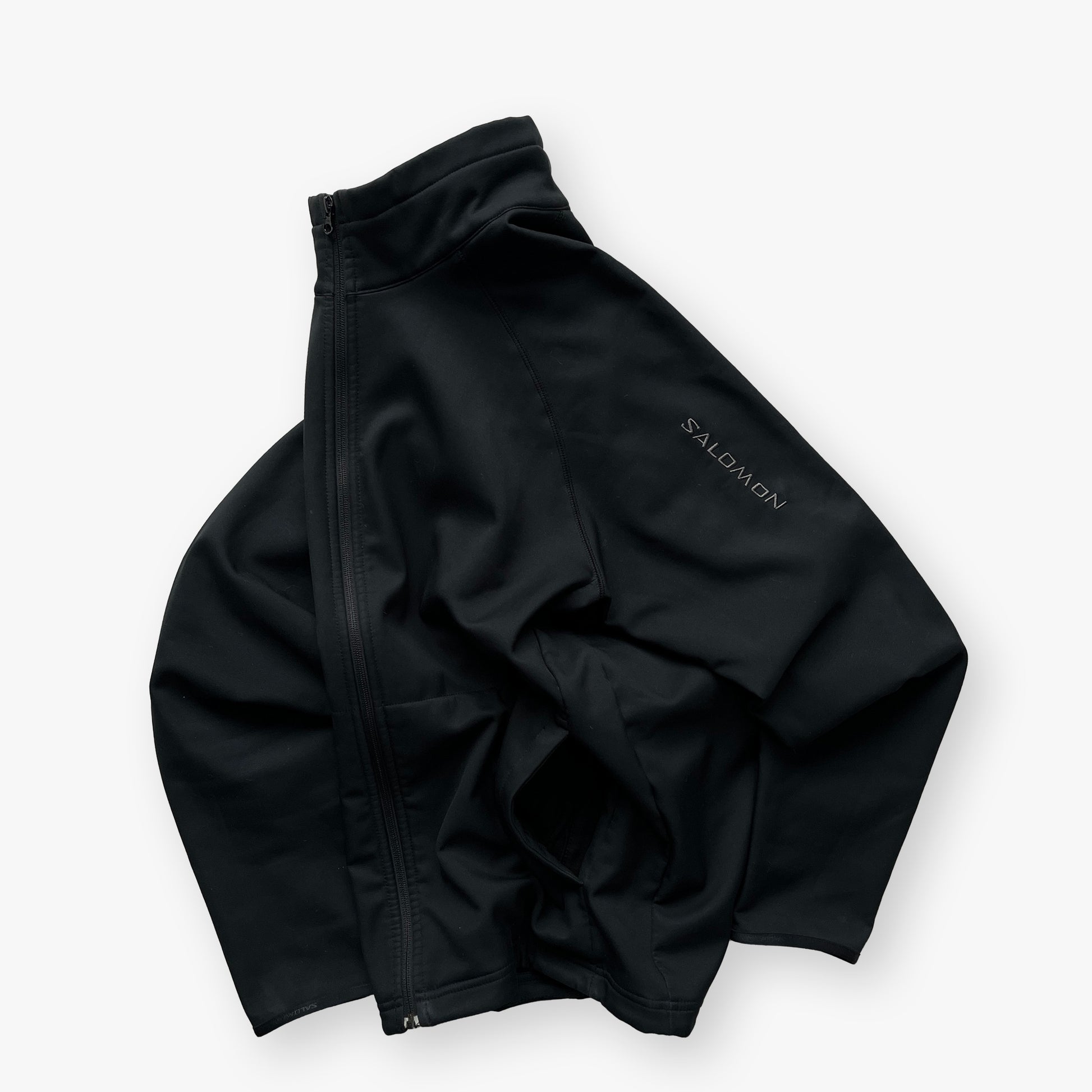 Soft-touch dark grey + black 2in1 Salomon 2009 Ski Jacket. Softshell ClimaPro making it water-repellent & the fleece lining completes it by making it very warm.