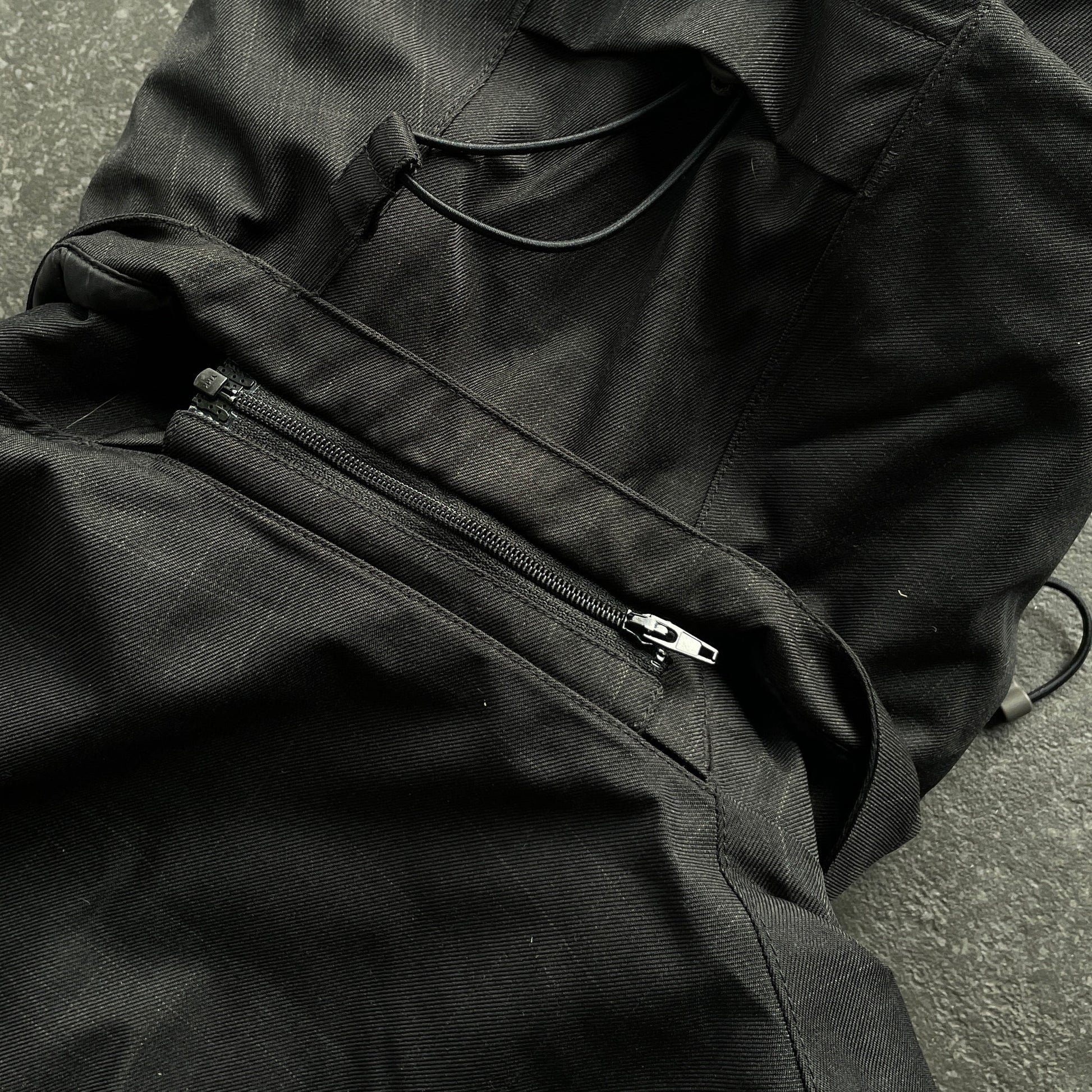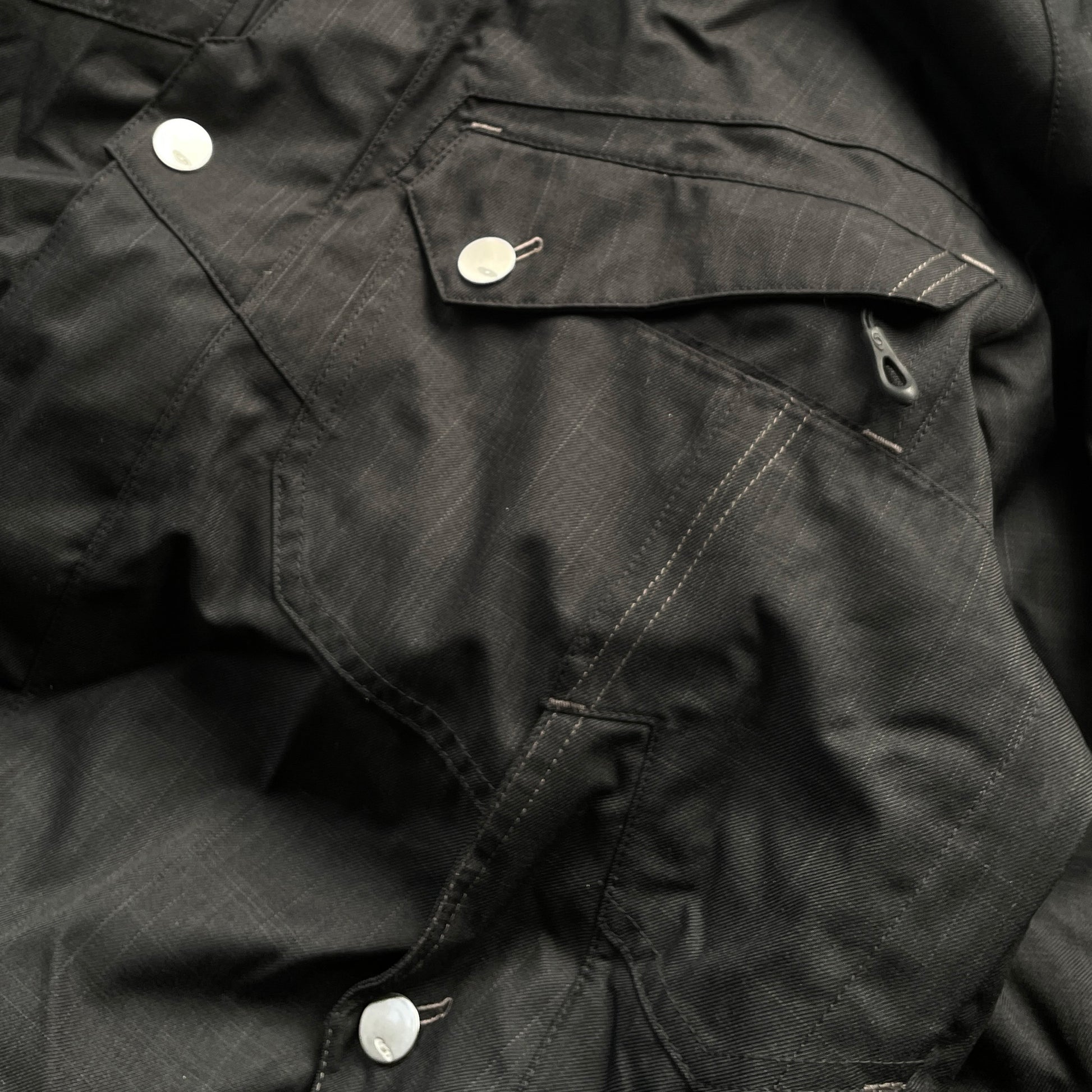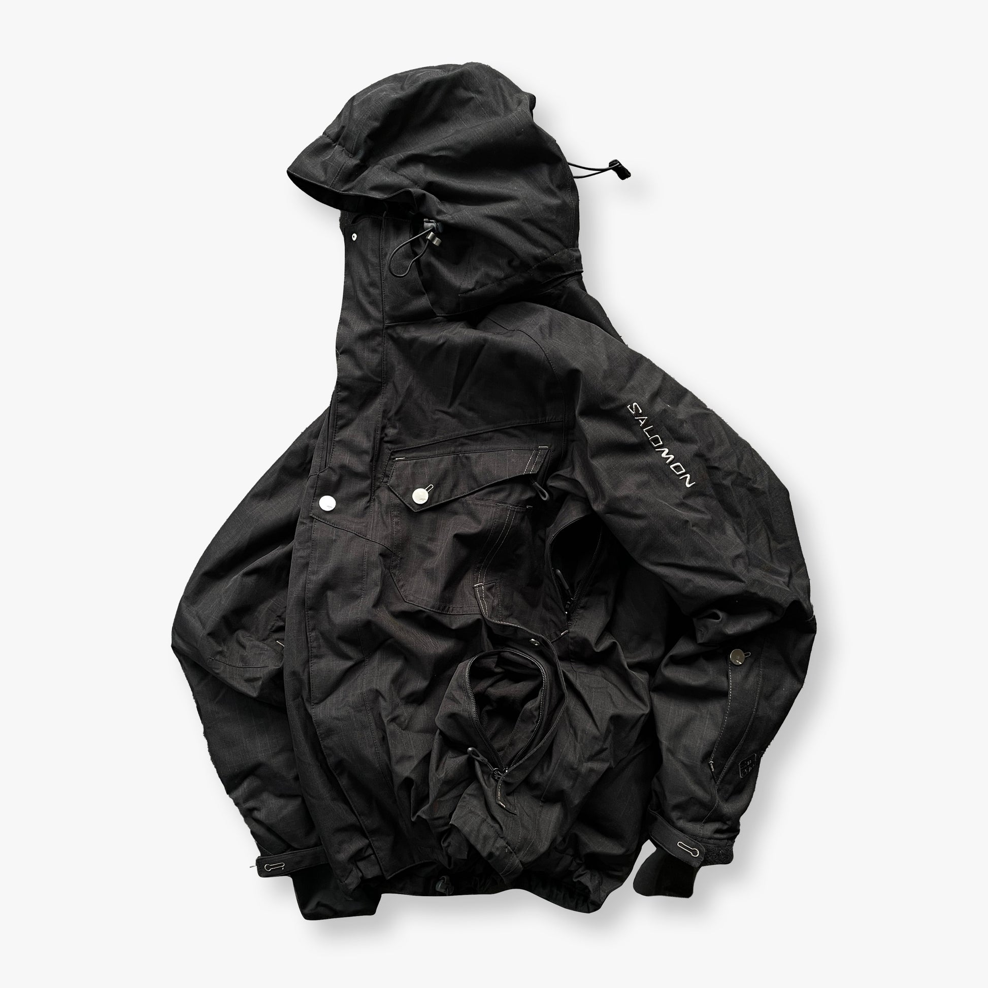 Features front zip-pockets, 2 chest pockets (1 with goggle-cleaning cloth), an arm-pocket, inside zip-pocket + goggle-pocket & a detachable hood with adjustable shockcords (sides + back). Also has the typical double-closure zip, adjustable shockcords at the waist, velcro sleeve cuffs & a snow-stopper.
