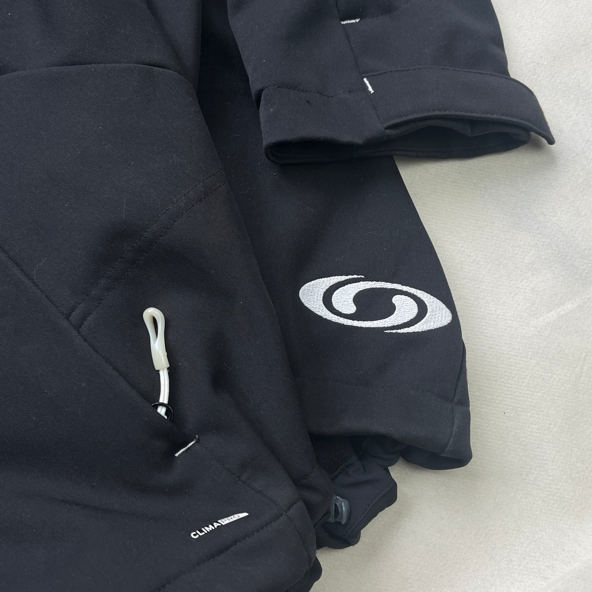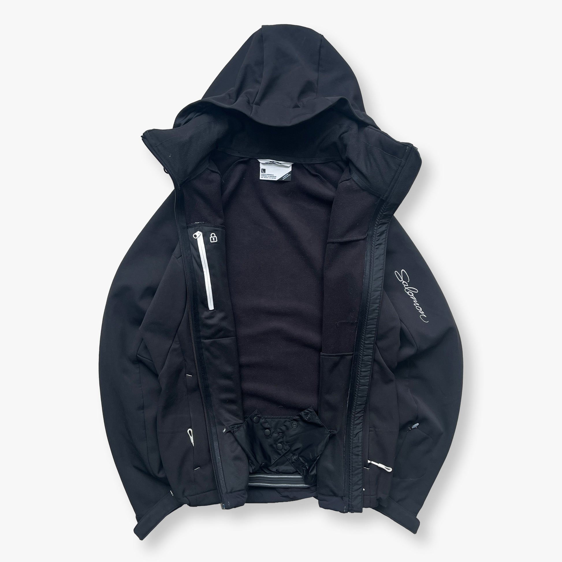 Beautifully paneled Black Salomon's 2012 Ski Jacket. Water-repellent softshell ClimaPro outer with a secondary inner fleece layer.