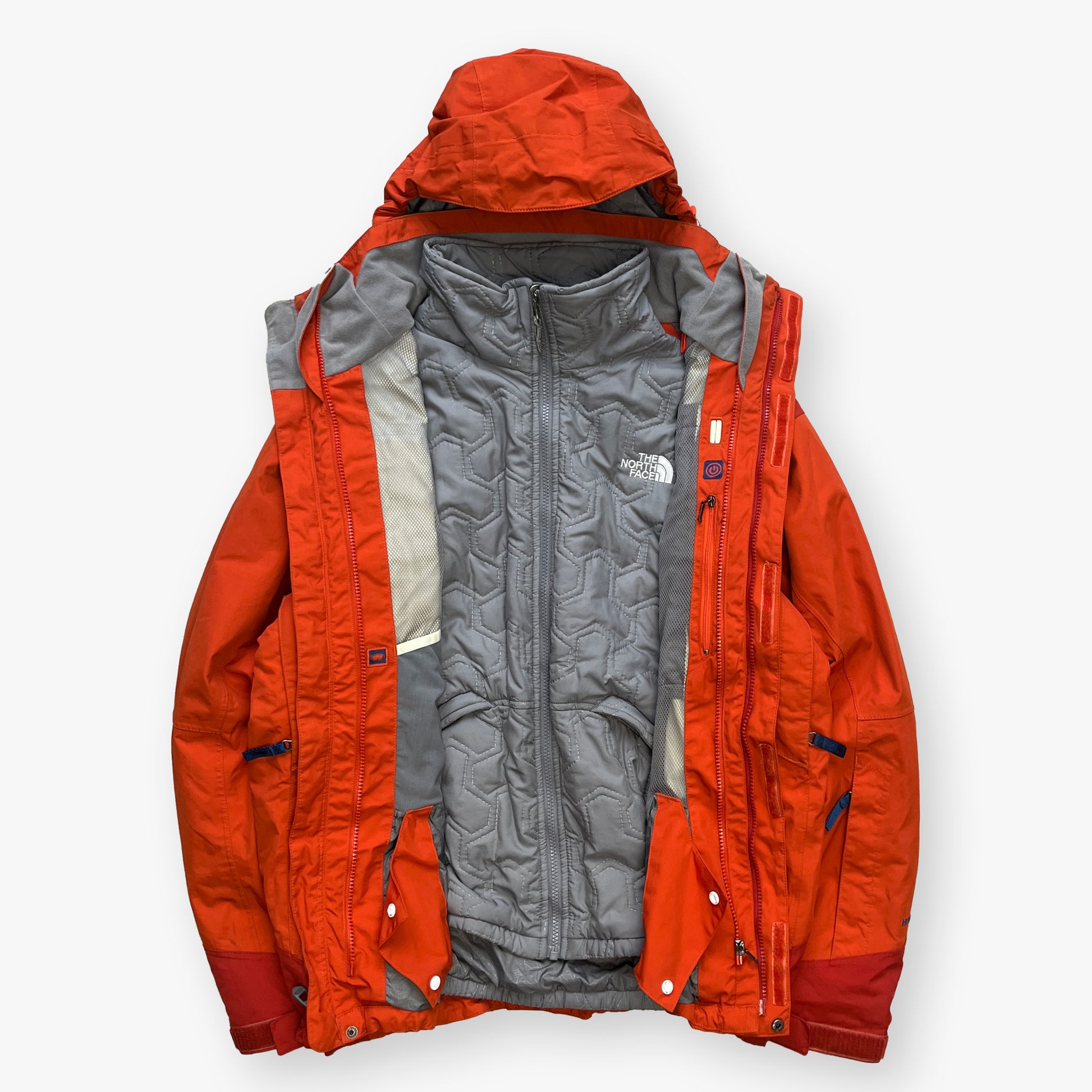 Orange/Red 2009 2in1 The North Face Ski Jacket. Super durable weatherproof outer (seam-taped) with loads of pockets/details & attaches a grey insulated inner layer for extra warmth.